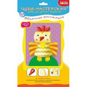 В наборе: цветная основа со схемой размещения деталей, детали, вырубленные из цветной бумаги, цветная листовка-образец.