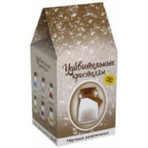 В наборе: красивая баночка, в которой удобно следить за выращиванием кристаллов, волшебный кристаллический порошок, кристаллическая таблетка, палочка для перемешивания, пробка, веревочка, бирка и инструкция.