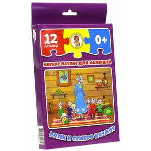 Мягкие пазлы развивают мелкую моторику рук, логическое мышление, усидчивость и внимательность. Собирая картинку, ваш малыш учится соотносить часть и целое, подбирать фрагменты по цвету, форме и размеру. А результат игры порадует его иллюстрацией к любимой сказке 'Волк и семеро козлят'. Размер готовой картинки 26 на 19,5 см.