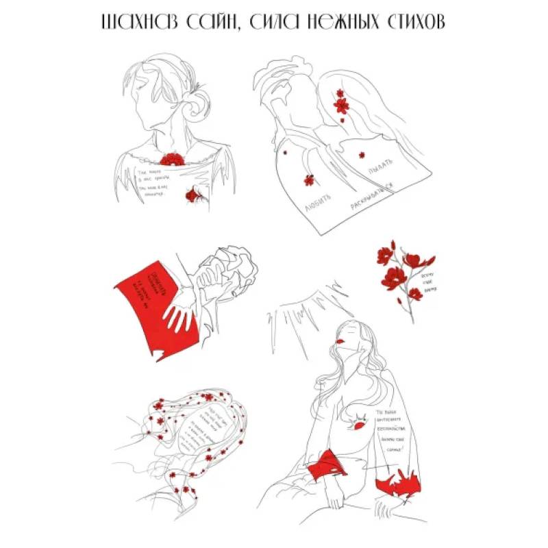 Эксклюзивные рисунки, выполненные самой Шахназ, в сопровождении любимых стихов из ее сборников. Можно клеить на любую поверхность! В набор входит один лист формата А5 с шестью уникальными стикерами.
