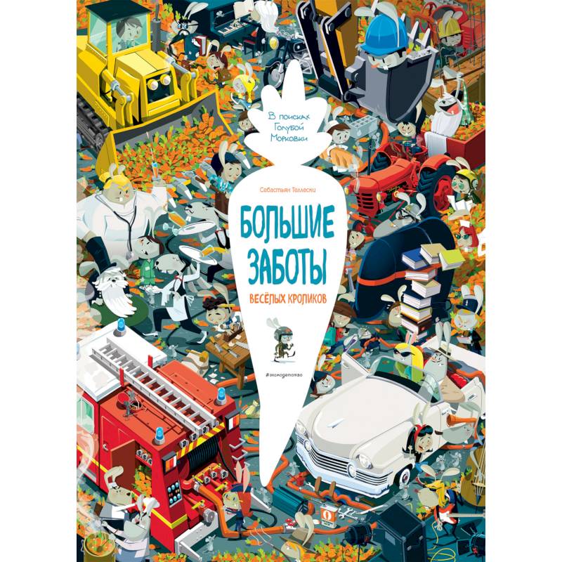 Читателям поручено важное задание: в пестром круговороте кроличьего мира помочь кроликам найти их сокровище - Голубую Морковку. Задание не из простых, ведь в исследование этого удивительного мира погружаешься с головой. Здесь каждый кролик чем-нибудь занят, а всё вокруг сделано из морковки: лекарства, хлеб, бензин и даже бетон! Рассмотреть все удивительные детали кроличьей норы и прочитать о весёлой кроличьей жизни будет интересно и ребёнку, и взрослому - а также повысить свою внимательность.