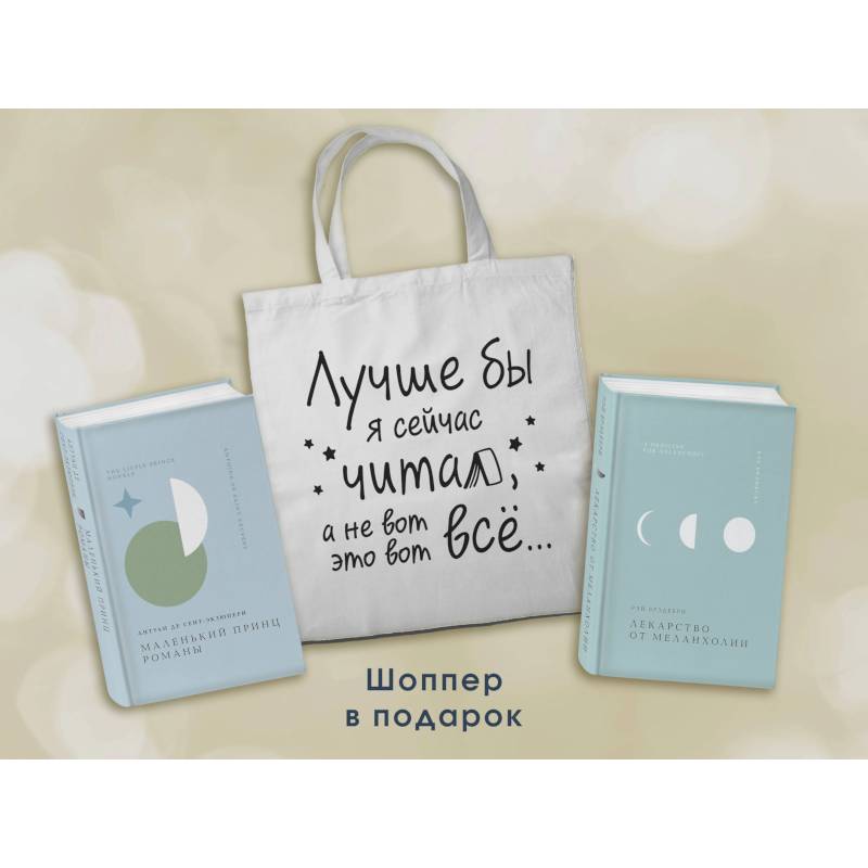 В комплект входят 2 книги: «Лекарство от меланхолии» Рэя Брэдбери, «Маленький принц. Романы» Антуана де Сент-Экзюпери.
