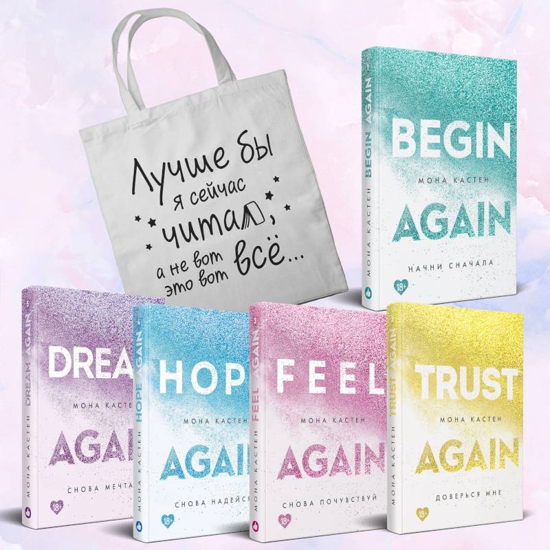 Комплект из 5 книг в серии «Абсолютный бестселлер Моны Кастен», куда входят: «Начни сначала», «Доверься мне», «Снова почувствуй», «Снова надейся», «Снова мечтай» + шоппер «Лучше бы я сейчас читал, а не вот это вот всё...».