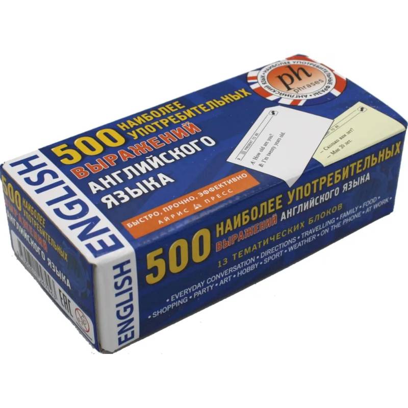Выражения структурированы по 18 грамматическим группам и 13 тематическим блокам. Перед каждой группой помещена карточка с краткой грамматической схемой, а также в ней пронумерованы все карточки из группы. Для максимального удобства тексты карточек имеют форму диалога и сквозную нумерацию.