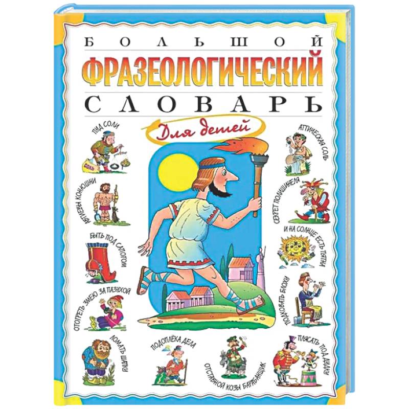 В книге представлены около 400 идиом — фразеологических оборотов, смысл которых не может быть понят из значений входящих в них слов. Каждый фразеологизм содержит толкование значения, историю происхождения, пример использования в литературе и рисунок, наглядно отражающий его смысл, что очень важно для более легкого освоения детьми такого сложного материала, как фразеология русского языка.