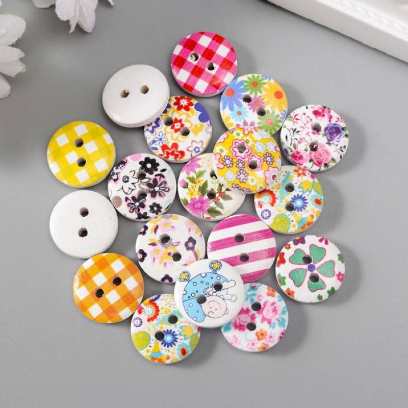 Пуговицы декоративные дерево 'Цветные' вес 8 гр