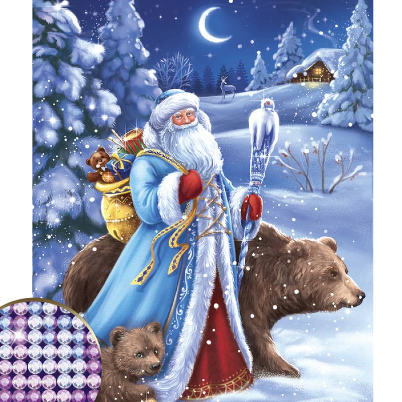 —Алмазная вышивка с частичным заполнением 'Дед Мороз' 30x40 см, холст, емкость