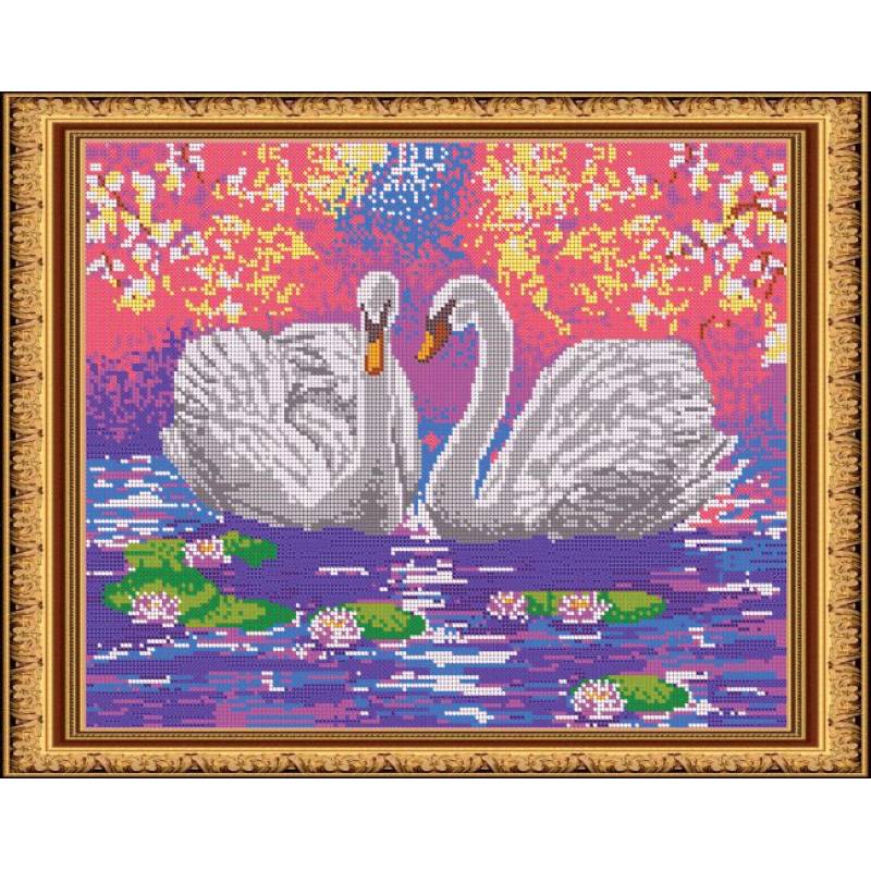 —«Светлица» набор для вышивания бисером №530П «Пара лебедей» бисер Чехия 38x30см